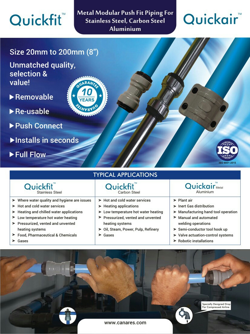 Authorised Dealer Turn Key Projects Quickair Aluminum Piping for Compressed Air 10 years warranty Zero leakages, ence energy saving Pressure upto 20 Kg Modular - Easy to install, remove and reinstall. Cost saving on Supports against Heavy Pipes Transair Airpipe