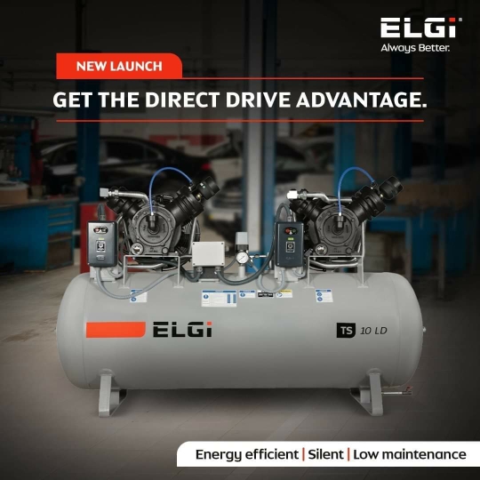Direct Driven Reciprocating Air Compressors is the new technology which has following benefits for users : • Energy Saving of approximately 8% • Less Space Required to install • Less Noise Polution • Less Prices With Twin Block compressors there is an additional advantage of - • Flexible Sizing