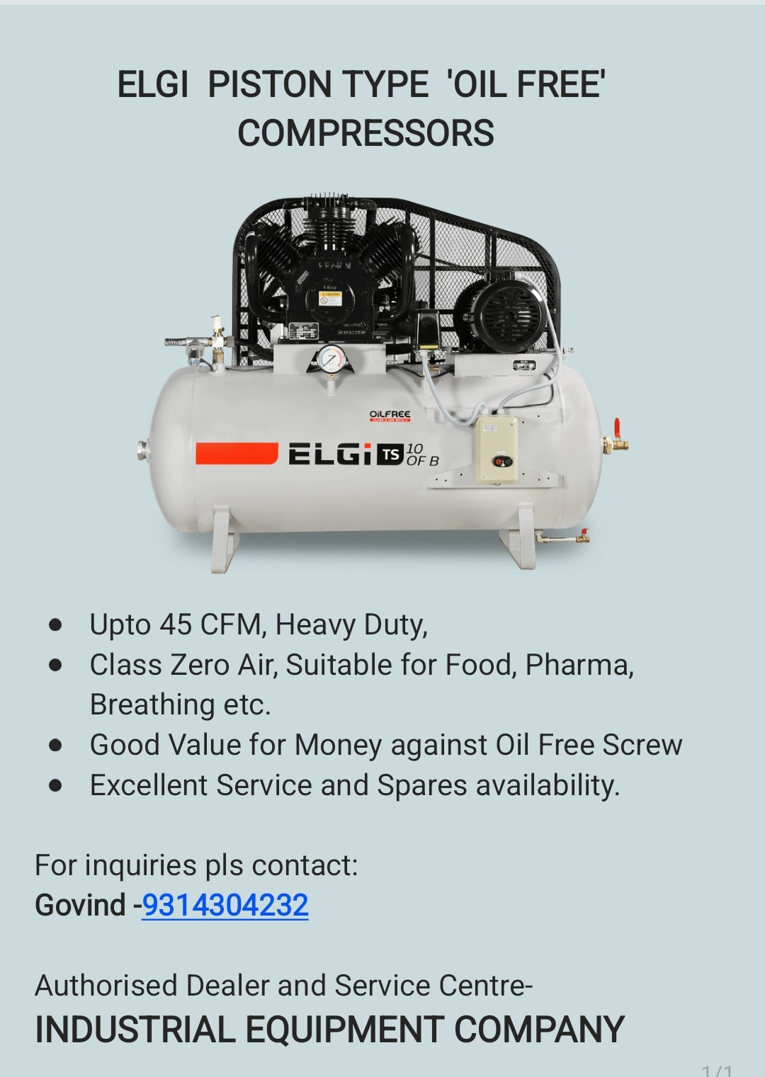 Easy to maintain and Economic Oil Free Air